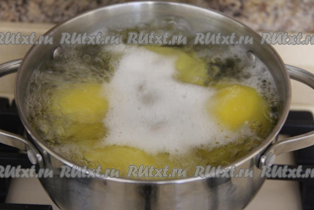 Варить картошку минут 10 с момента закипания, затем убрать с огня, воду слить, дать картошинам немного остыть.