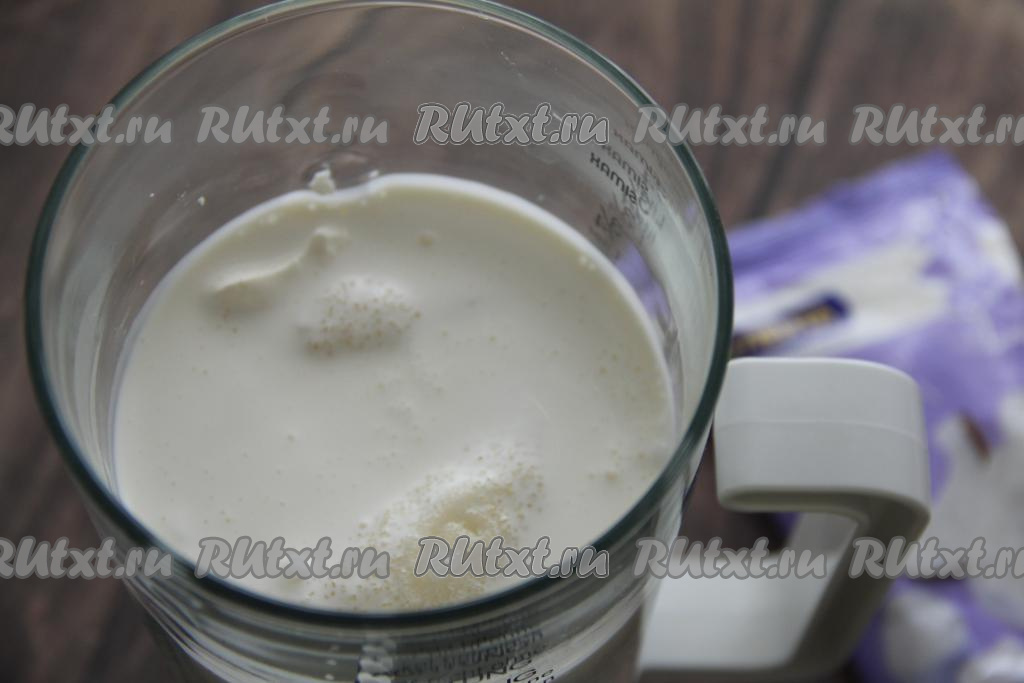 В чашу блендера выложить творог, сахар и молоко (или сливки).