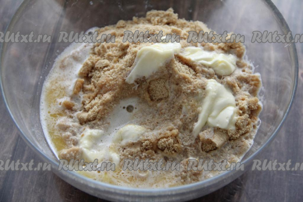 Соединить получившуюся крошку из печенья и растопленное сливочное масло.