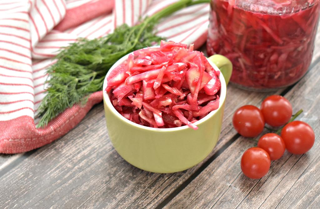 Замариновать капусту можно по-разному. В этот раз я предлагаю рецепт быстрого приготовления маринованной капусты со свеклой, луком и чесноком. Овощи, замаринованные в горячем маринаде по этому рецепту, получаются хрустящими, ароматными и вкусными. Такая капуста со свеклой станут прекрасным дополнением к мясу, птице или различным гарнирам.