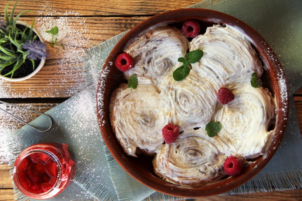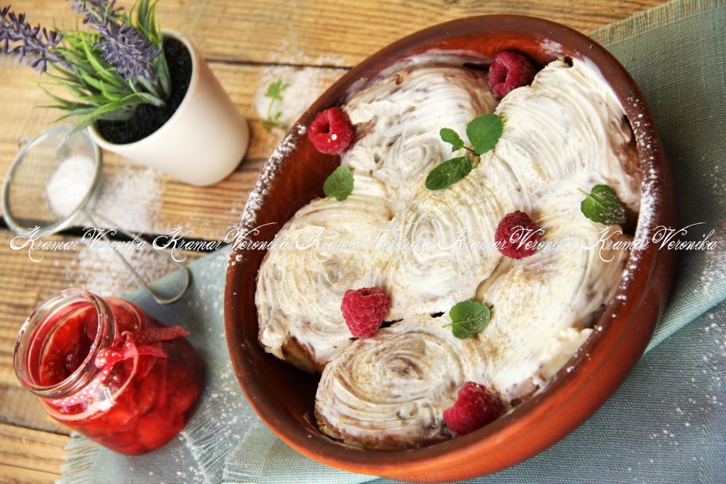 Для приготовления творожного крема соединить творожный сыр и сахарную пудру, тщательно перемешать. Горячие синнабоны с корицей смазать творожным кремом. Вот такие красавчики получились!