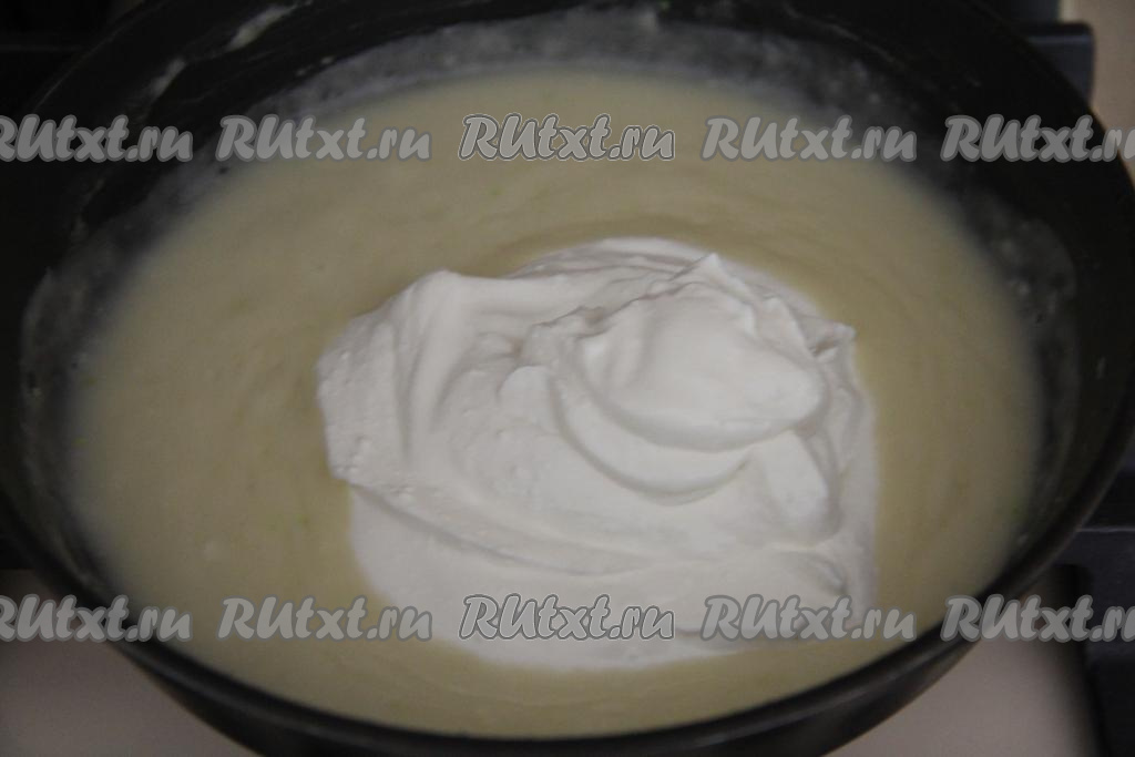 Добавить сметану, очень хорошо перемешать, посолить и поперчить по вкусу, довести сметанный соус до кипения.