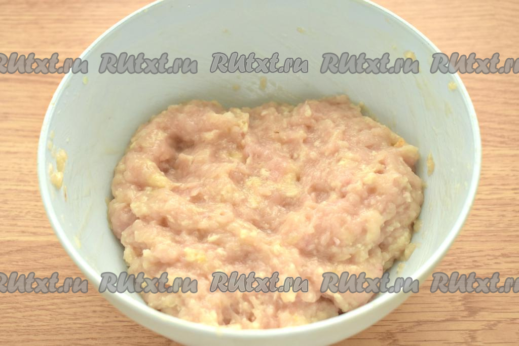 Тщательно перемешиваем и фарш для приготовления паровых куриных котлет готов.