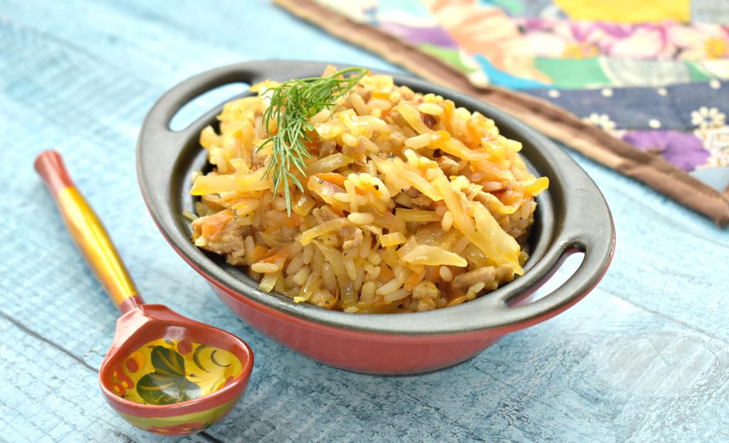 Предлагаю к обеду или ужину подать капусту, тушёную на сковороде с фаршем и рисом. Это простое, вкусное, сочное и сытное блюдо очень похоже на ленивые голубцы, однако готовится немного проще и быстрее. Капуста, тушёная с фаршем и рисом, подаётся в горячем виде. Приготовьте это блюдо и вам, наверняка, понравится его насыщенный вкус!