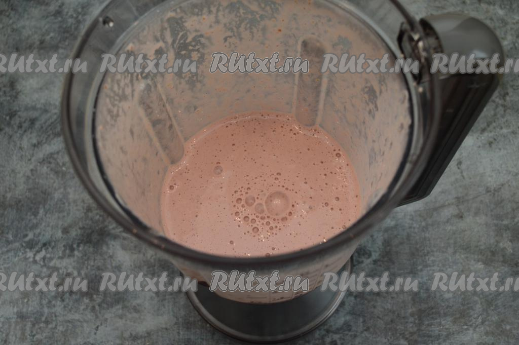 Закрыть коктейльный блендер крышкой и включить на полную мощность примерно на 1 минуту (если готовите с помощью погружного блендера, тогда просто пробейте до однородности). Масса хорошо взобьётся и увеличится в объёме. На этом этапе попробуйте молочно-клубничный коктейль на вкус, если сладости вам недостаточно, тогда добавьте сахар или мёд и взбейте коктейль ещё в течение 10-20 секунд. Мне сладости в коктейле было достаточно, поэтому ни мёд, ни сахар я добавлять не стала.