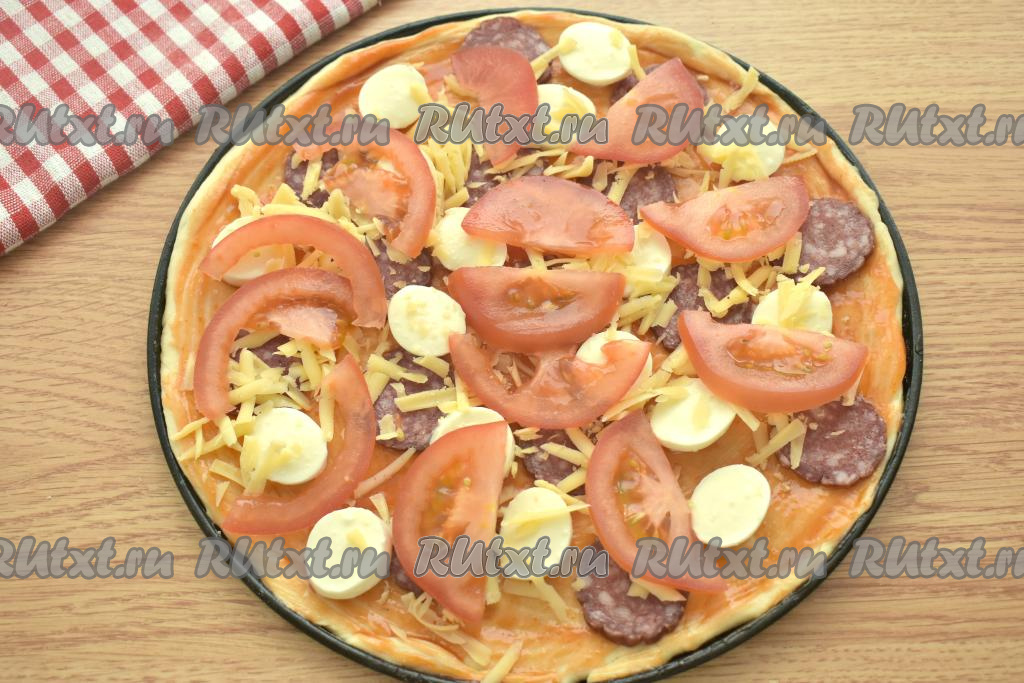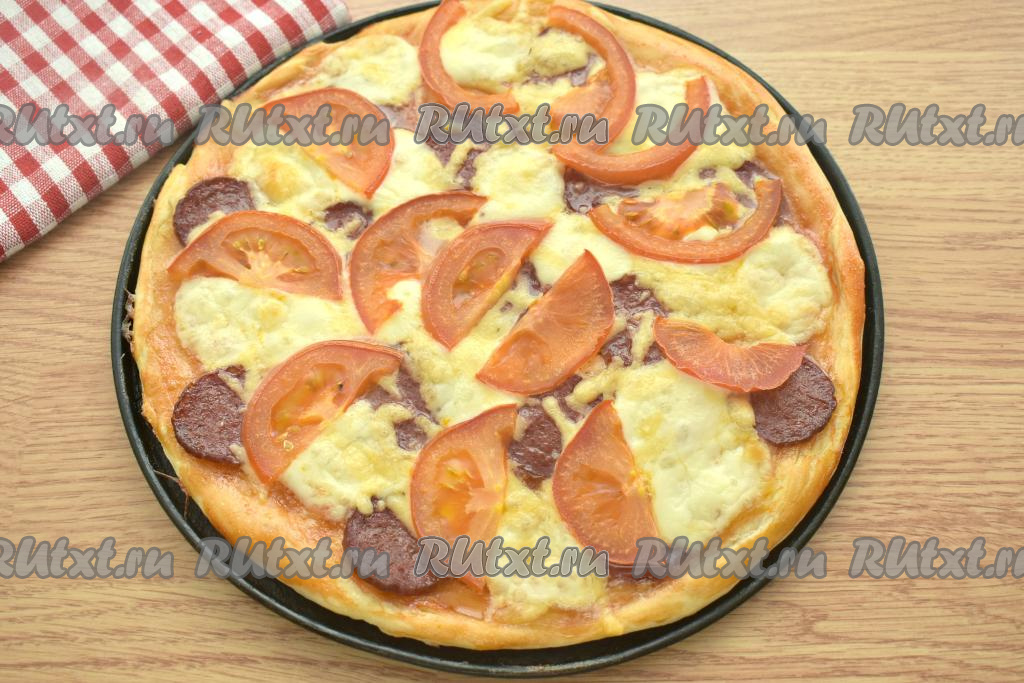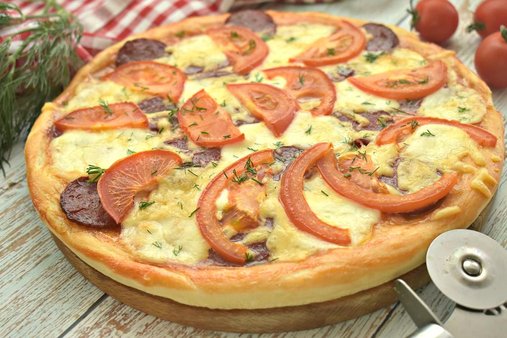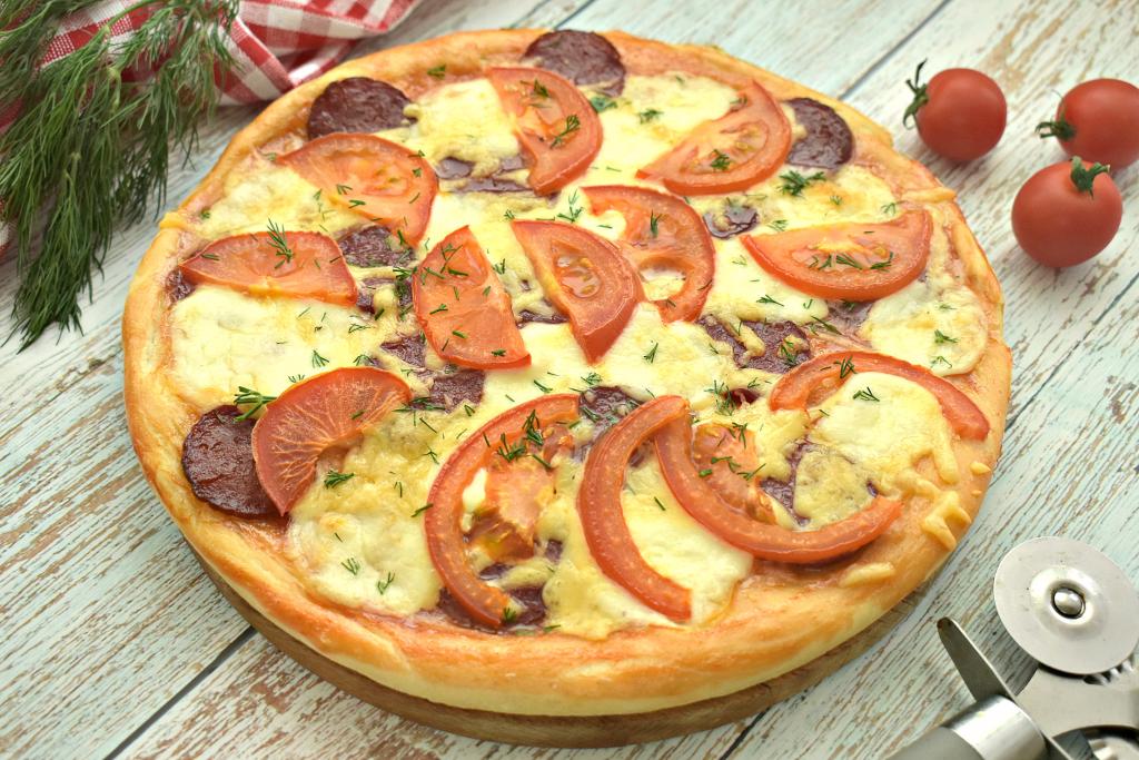 Пицца - одно из самых популярных блюд в мире, которое можно приготовить самостоятельно, не выходя из дома. Предлагаю испечь аппетитную, вкусную и ароматную пиццу с начинкой из моцареллы, колбасы и свежих помидоров. Готовить пиццу по этому рецепту достаточно просто, а результат порадует и вас, и ваших близких. Такая выпечка станет отличным вариантом для обеда или ужина. Количество ингредиентов указано на 2 пиццы диаметром 25 сантиметров.