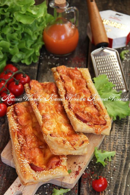 Для быстрого перекуса из покупного слоёного теста можно приготовить вкусные, приятно похрустывающие слойки с сочной начинкой из сосисок и сыра. Такие слойки очень любит мой сын, он часто берёт их с собой в школу для перекуса. А чтобы результат вас не разочаровал, выбирайте сосиски и сыр хорошего качества.