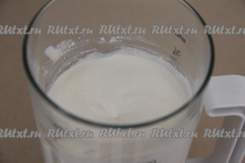 В чашу блендера поместить творог, сахар и сливки, взбить творожную массу погружным блендером до однородного состояния.