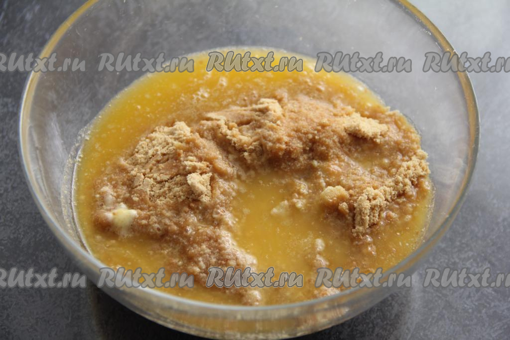 Печенье измельчить в крошку (можно измельчить печенье в измельчителе, а можно поместить печенюшки в целлофановый пакет и прокатать поверх пакета скалкой). Сливочное масло растопить, дать немного остыть. Соединить печенье, измельчённое в крошку, и растопленное масло в глубокой миске, тщательно перемешать массу ложкой.