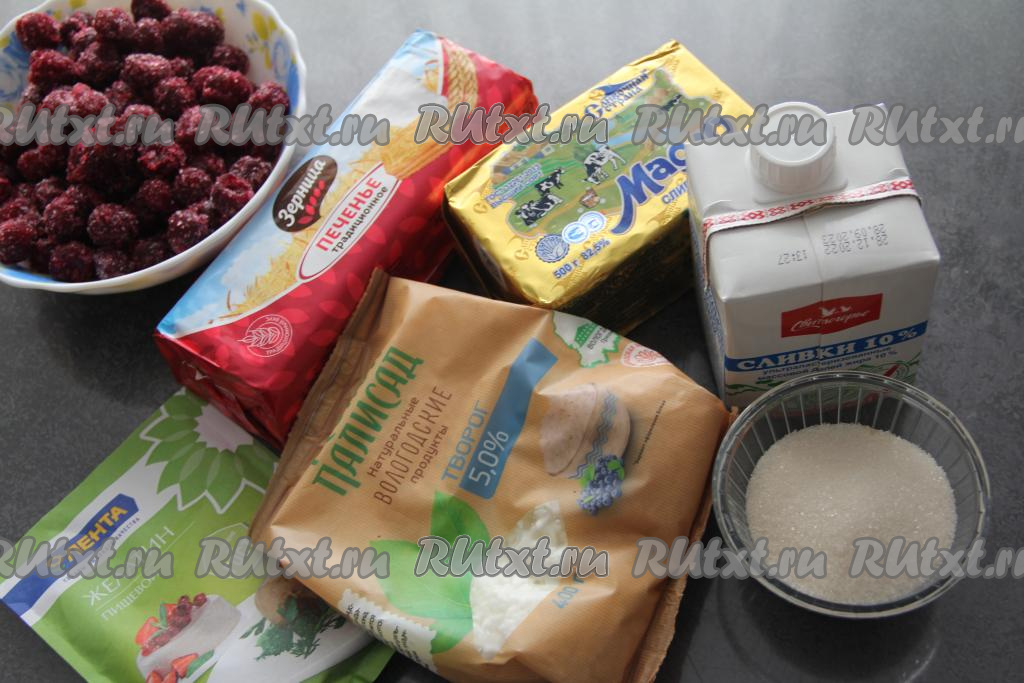 Желатин, набухший в молоке, прогреть на среднем огне, постоянно помешивая, до полного растворения кристаллов желатина и не доводя до кипения (можно прогреть и на водяной бане или в микроволновке). В творожную массу влить желатиновую смесь и взбить блендером до однородного состояния. Влить творожно-желатиновую массу в форму поверх основы из печенья. Поставить чизкейк в холодильник на 2-3 часа (до полного застывания творожной массы).