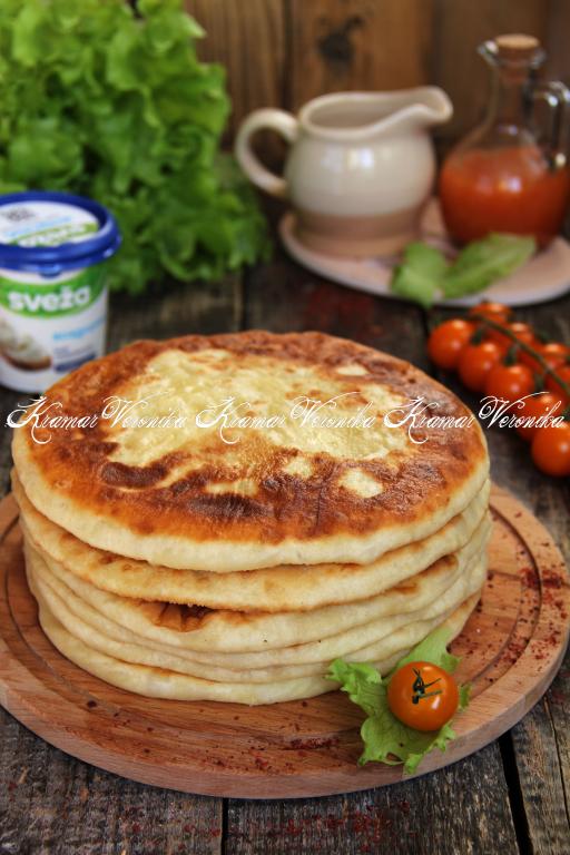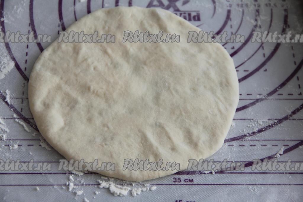 Перевернуть лепёшку и аккуратно раскатать скалкой. У меня получилась лепёшку диаметром примерно 20 сантиметров.
