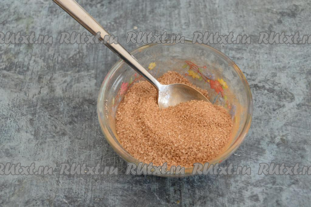 В небольшой пиале соединить сахар и молотую корицу, перемешать до однородности.