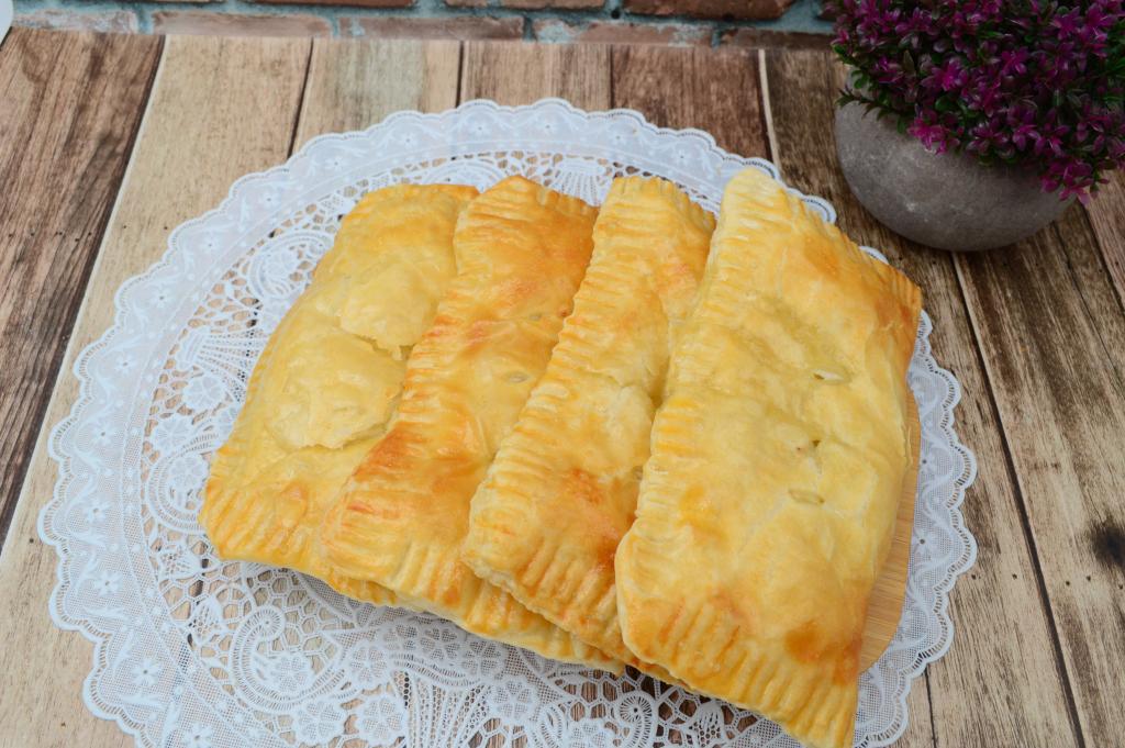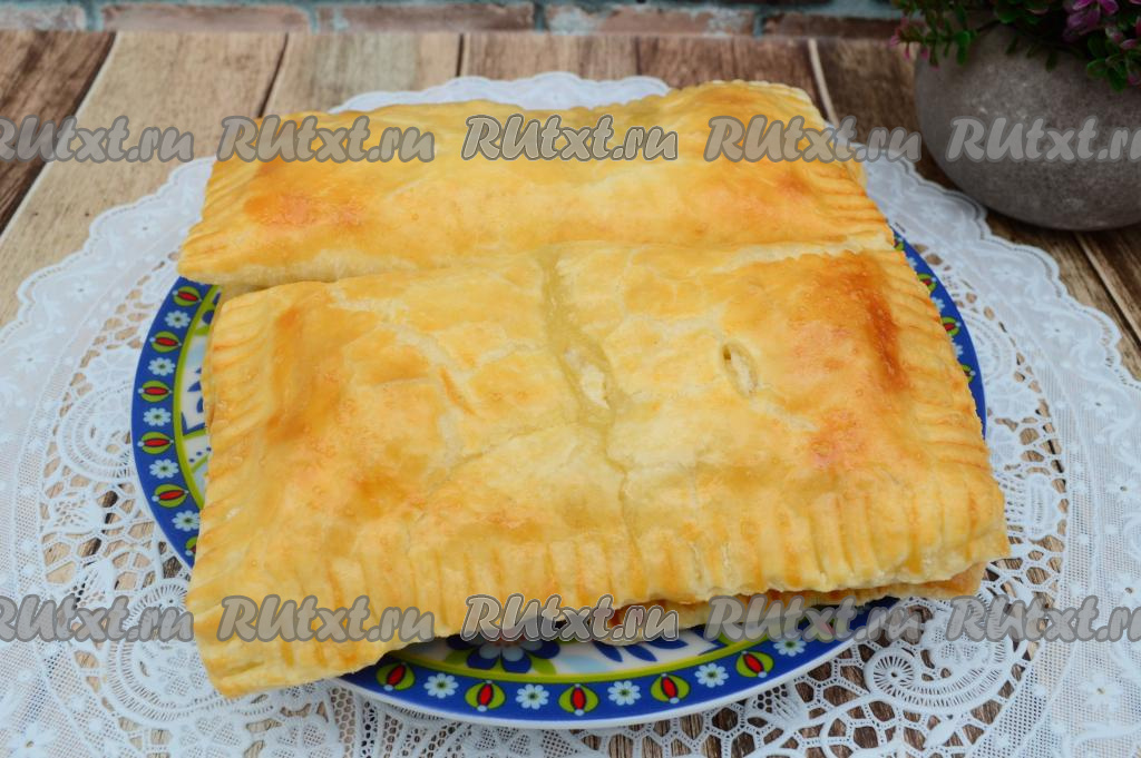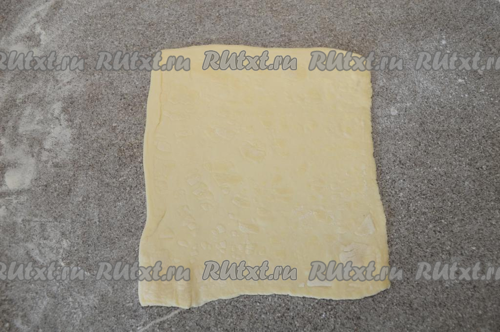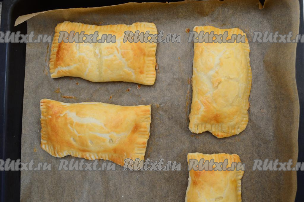 Противень со слойками отправить в разогретую духовку и выпекать минут 25 при температуре 180 градусов (до подрумянивания теста).
