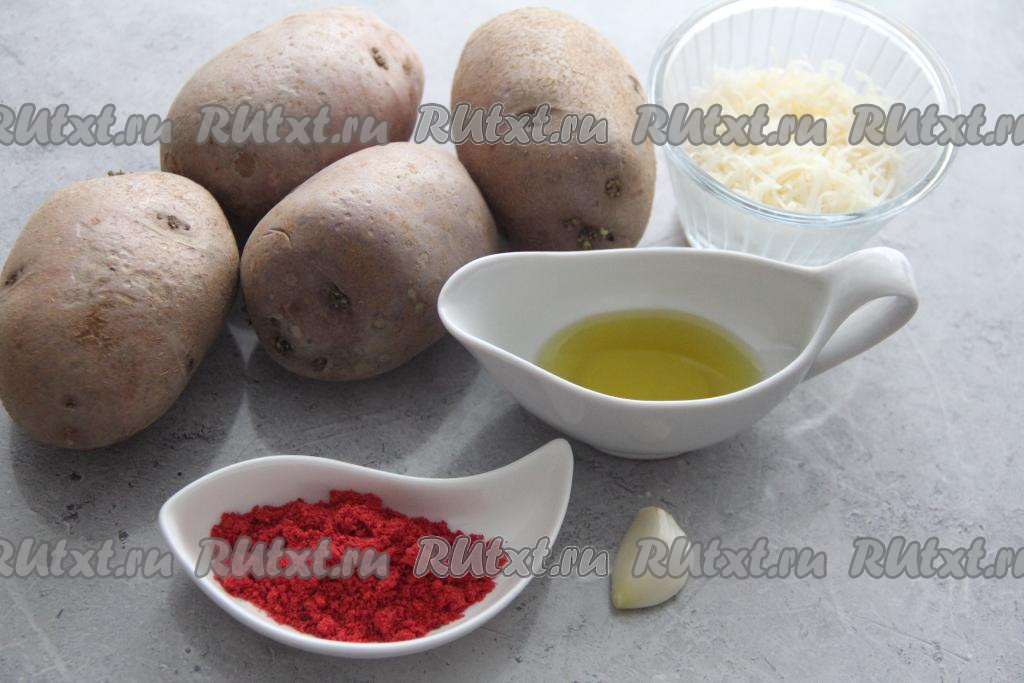 Подготовить продукты. Картошку лучше взять одинакового размера. Чеснок почистить. Картофель хорошо вымыть железной щёткой, удаляя все загрязнения, от кожуры можно не очищать.