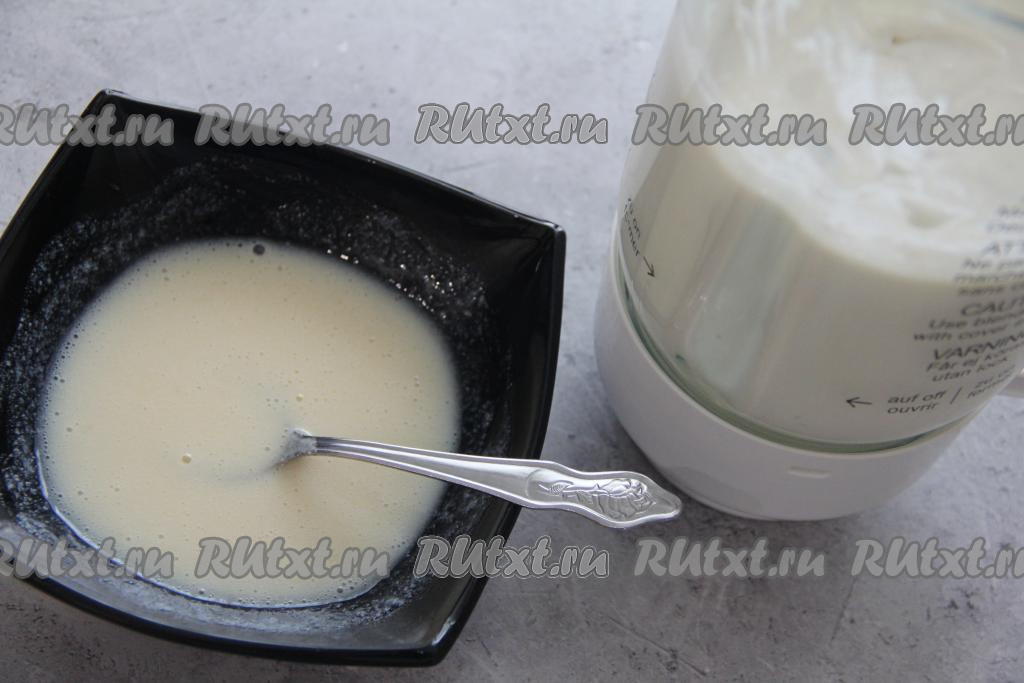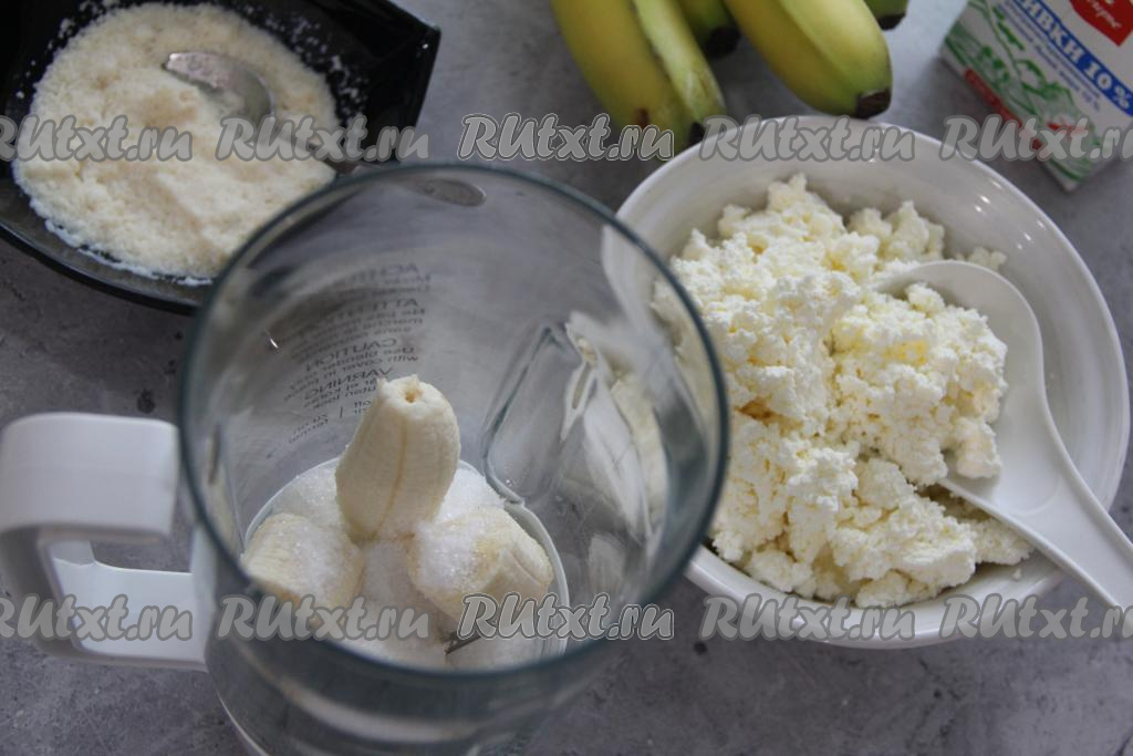 В получившуюся сливочно-банановую смесь добавить творог и пробить творожно-банановую массу до однородности.