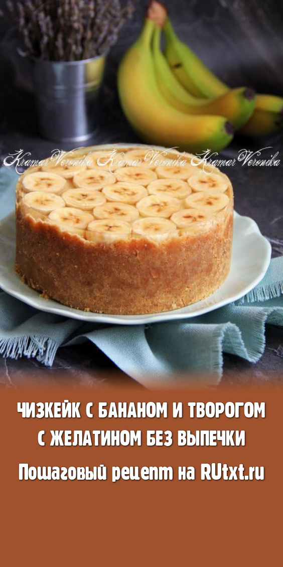 Всем любителям нежных, воздушных десертов предлагаю приготовить чизкейк с бананом, творогом, желатином и печеньем без выпечки. Этот красивый, вкусный творожно-банановый десерт можно подать и к семейному, и к праздничному чаепитию. Творог можно использовать любой жирности и консистенции. Бананы лучше взять крепкие и сладкие. Благодаря желатину, чизкейк очень хорошо держит форму, хорошо режется. Этот чизкейк с бананом и творогом своим вкусом украсит любое чаепитие!