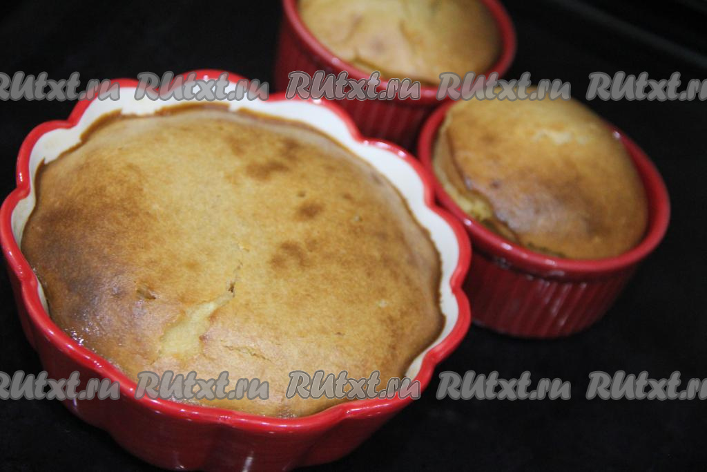 Форму для выпечки (я взяла три керамических формочки) смазать маслом, выложить творожную массу, заполняя форму (или формочки) практически целиком и отправить в разогретую духовку.