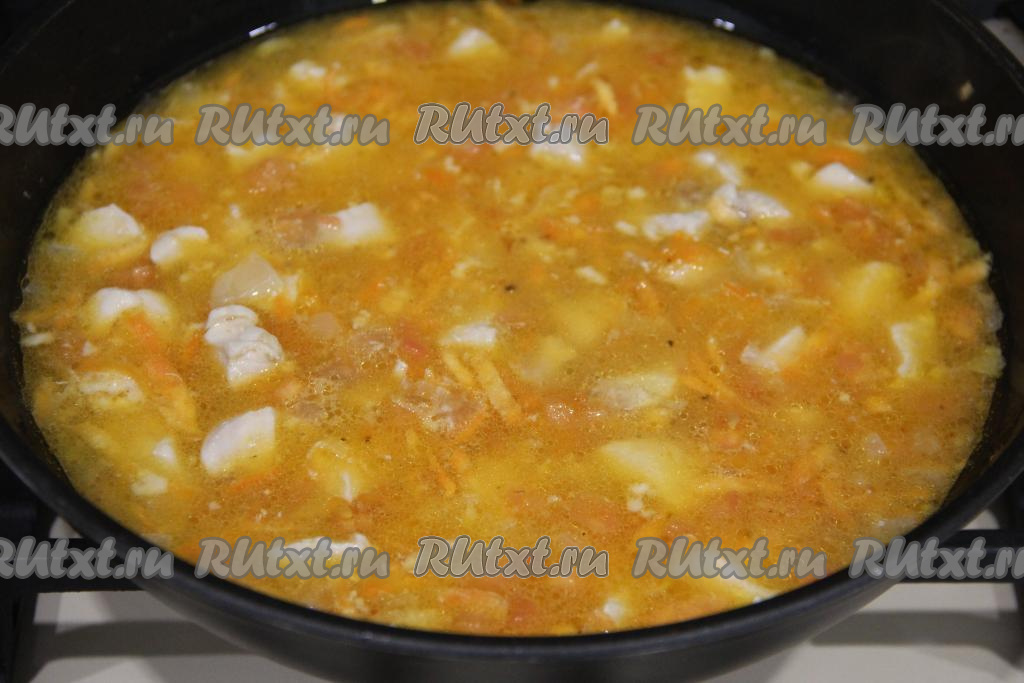 Влить воду комнатной температуры, посолить по вкусу и перемешать. Довести подливу до кипения.