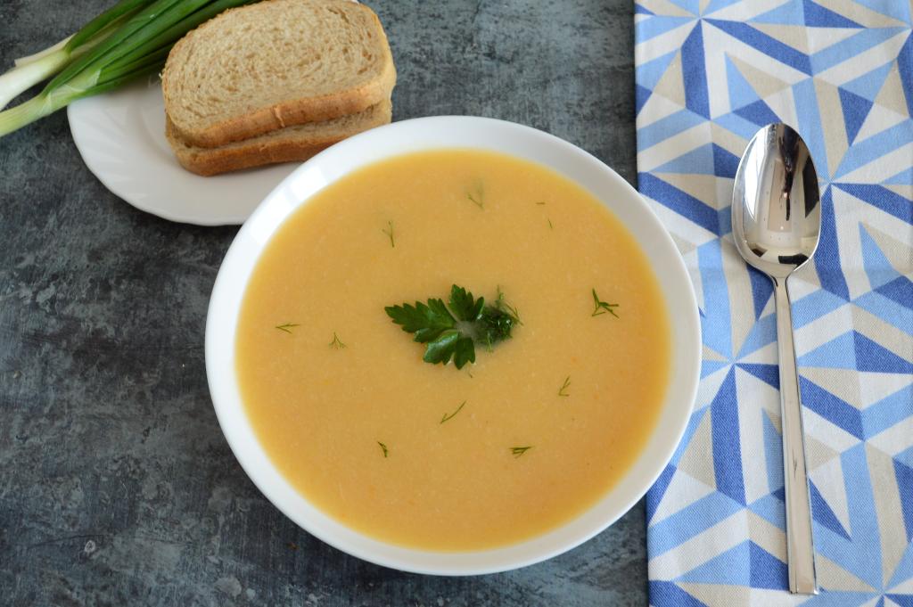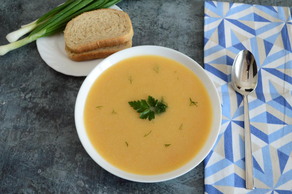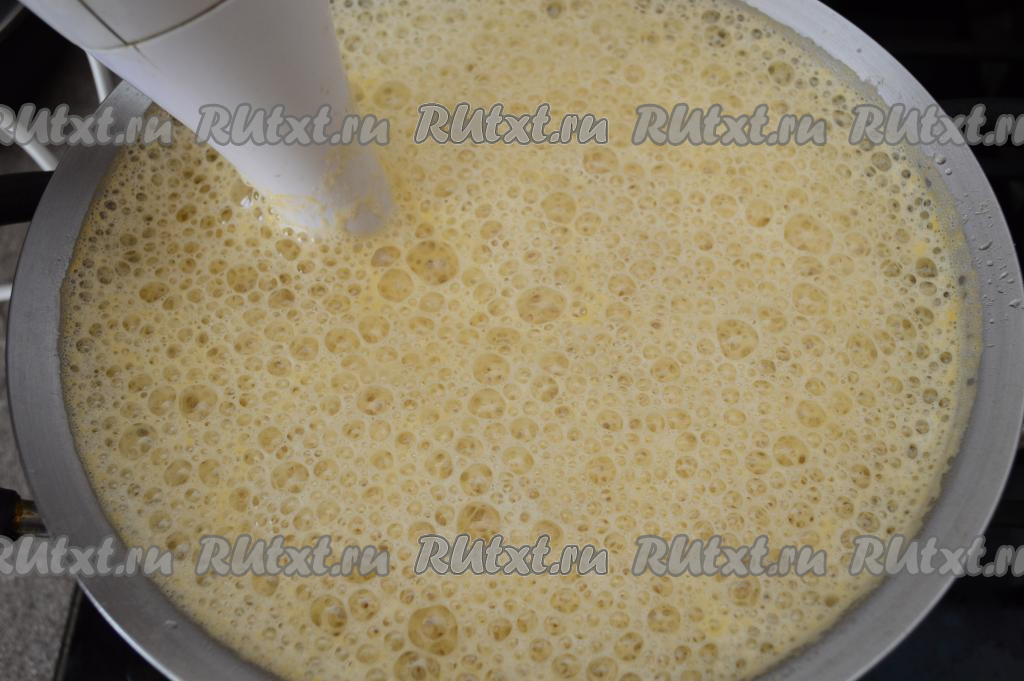 Затем убрать суп с огня, дать ему остыть в течение 5 минут и пюрировать его погружным блендером до однородности. Во время пюрирования суп будет пениться.