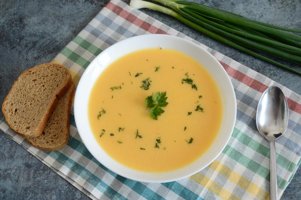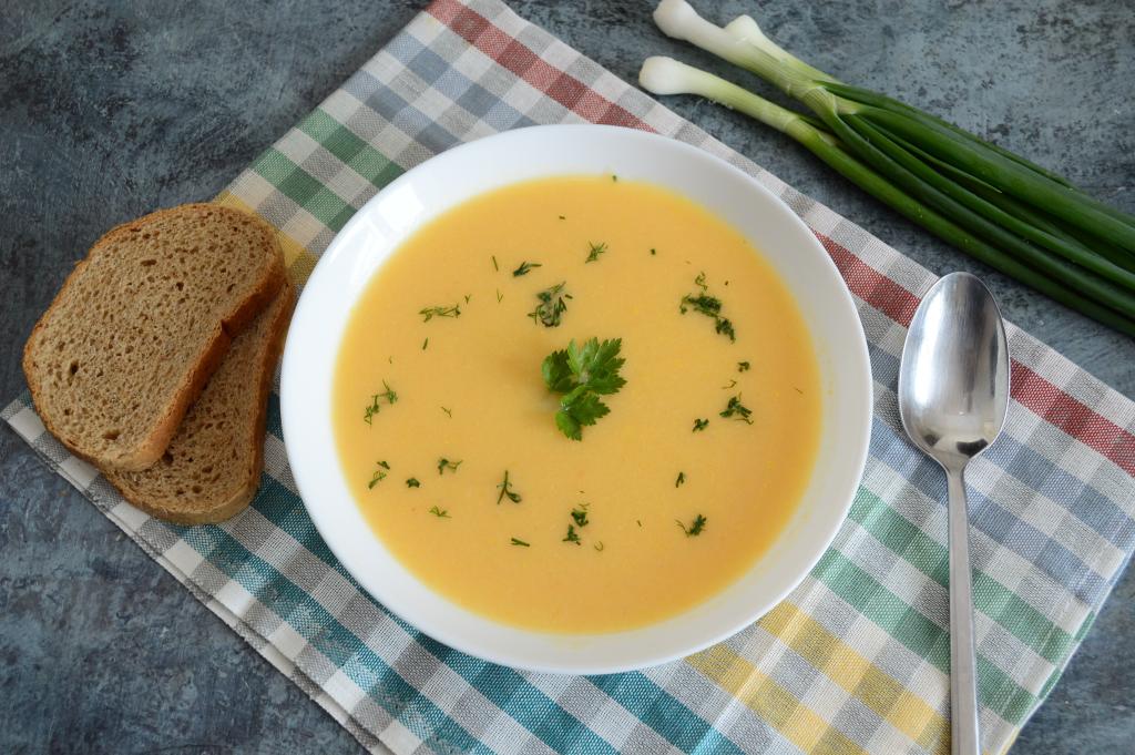 В горячий суп-пюре добавить плавленный сыр.