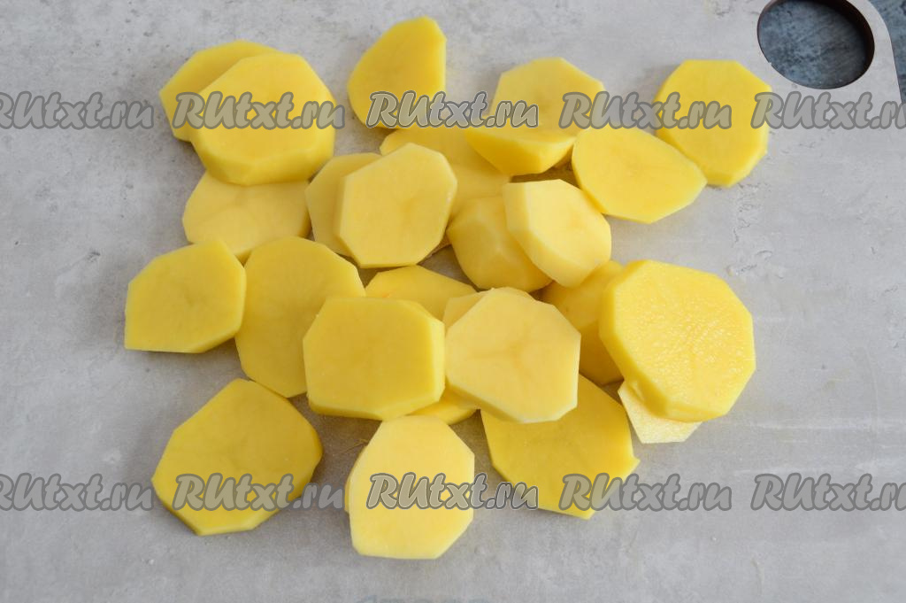 Картошку почистить и нарезать на кружочки средней толщины.