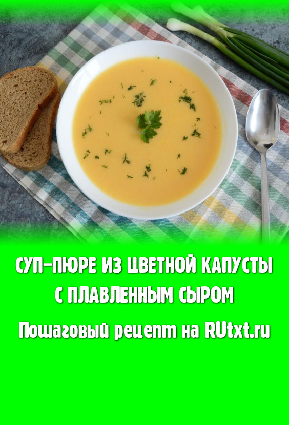 Нежный, бархатистый, сытный и очень вкусный суп-пюре, приготовленный из цветной капусты с плавленным сыром, подавать к столу в горячем виде, посыпав нарезанной свежей зеленью.