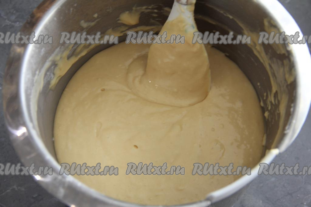 Тесто для медового коржа должно получиться очень воздушным, не очень густым (оно будет по консистенции напоминать тесто для оладий).