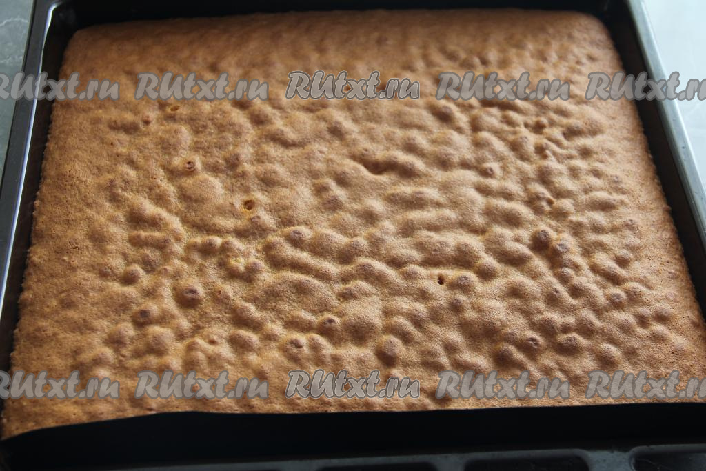 Выпекать медовый корж в разогретой духовке при температуре 180 градусов ориентировочно 20 минут. Готовность проверить, проколов корж сухой зубочисткой (если корж полностью готов, значит зубочистка останется сухой и чистой). Готовый медовый корж достать из духовки, полностью остудить.