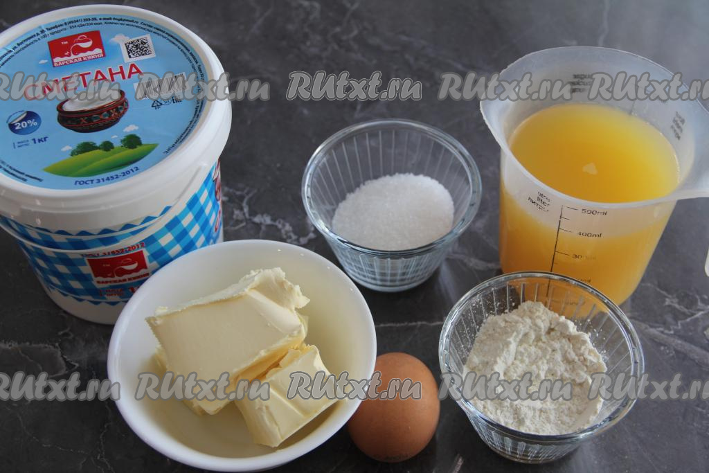В первую очередь подготовить продукты для приготовления апельсинового крема. Сок можно взять покупной или свежевыжатый из апельсинов. Сливочное масло и для приготовления крема, и для замешивания теста должно быть комнатной температуры, поэтому достать из холодильника его нужно заранее.