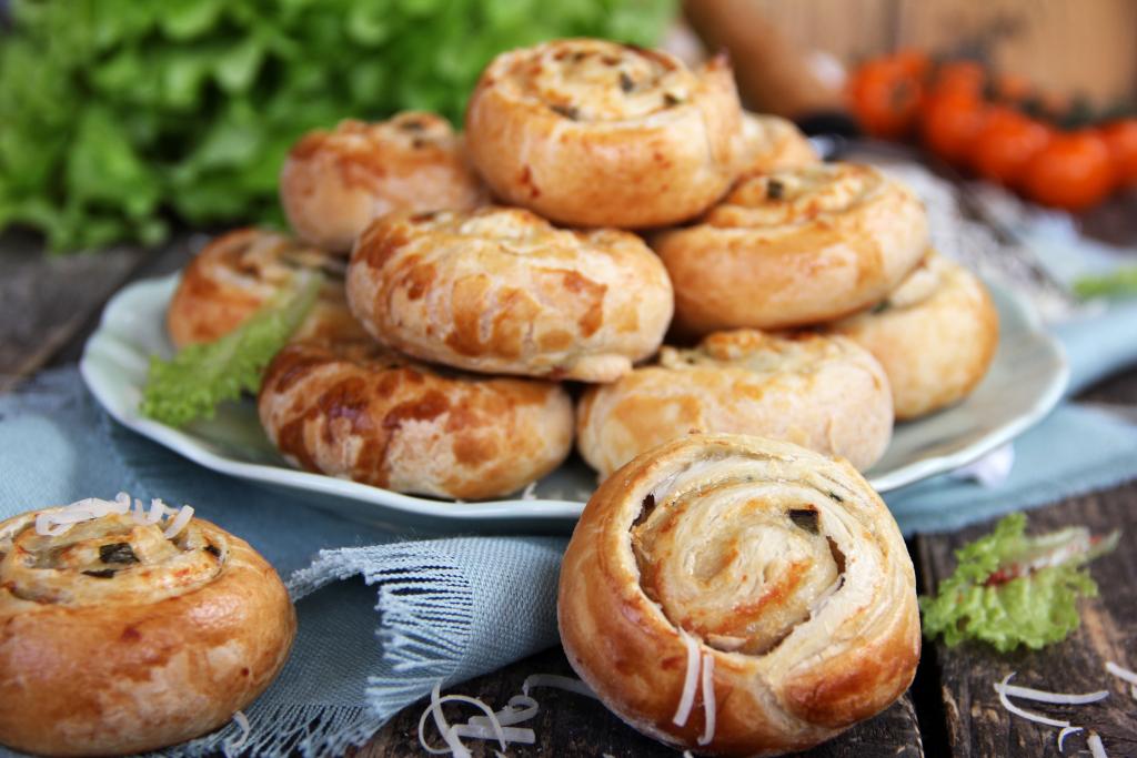 Рулетики с фаршем из слоёного теста готовятся в духовке и просто, и быстро, а получаются очень вкусными, аппетитными и сытными.