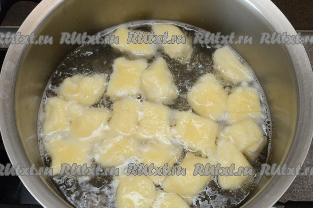 В подходящей кастрюле вскипятить воду. Выложить ленивые вареники в кипящую воду. Сделать огонь средним. Когда все вареники всплывут, варить их на небольшом огне 2 минуты и можно выключать огонь.