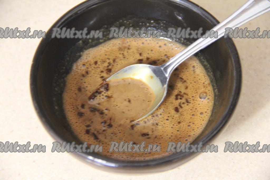 Растворимый кофе развести в 2 столовых ложках воды и влить в крем. При желании этот этап можно пропустить, приготовив крем без добавления кофе, растворённого в воде.