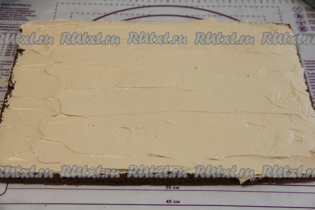 Смазать корж кремом (немного крема оставить для обмазывания торта).