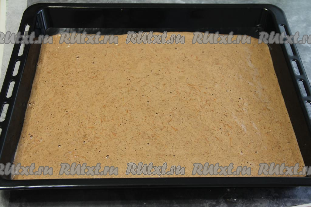 Обмазать шоколадно-морковный торт оставшимся кремом со всех сторон и убрать в холодильник на ночь.