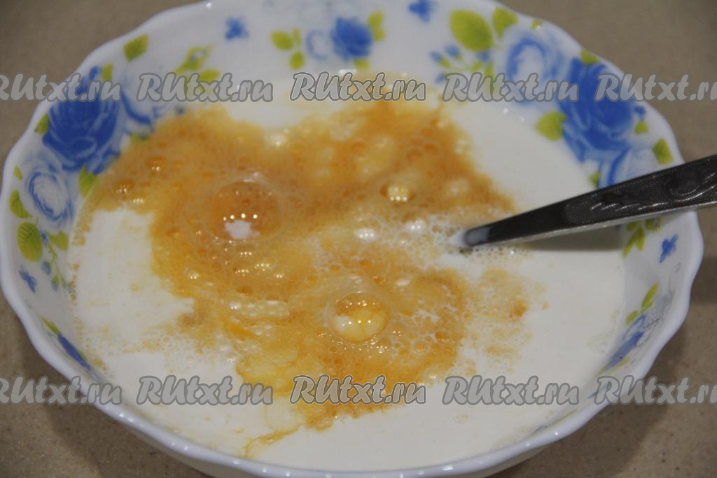 В отдельной ёмкости соединить яйца и сливки, посолить по вкусу, перемешать вилкой до однородности.