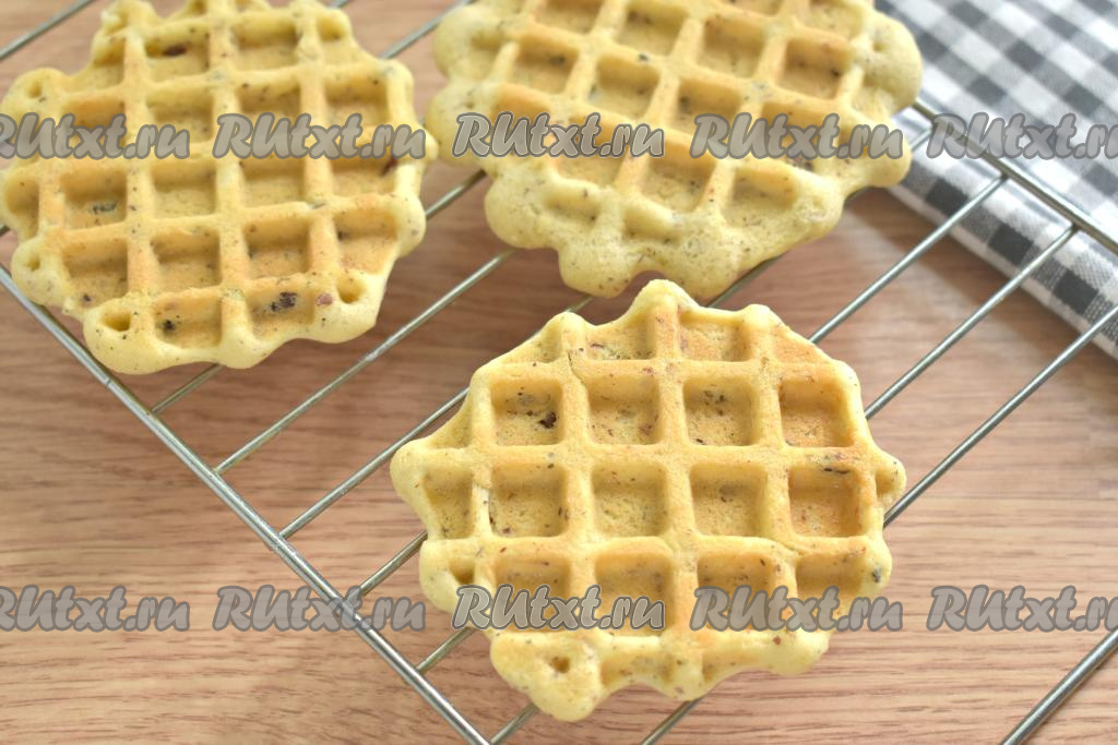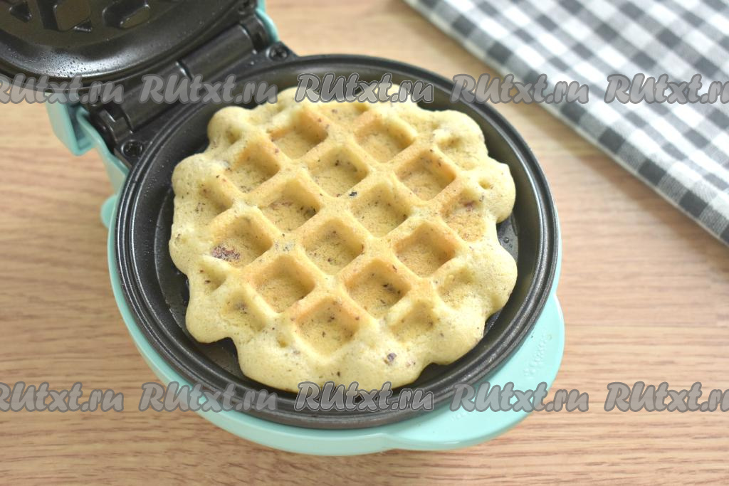 Накрываем тесто второй панелью и готовим ореховую вафлю до золотистого оттенка (продолжительность выпечки зависит от свойств вашей вафельницы, у меня каждая вафля выпекалась 3 минуты).