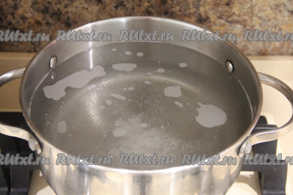Поставить кастрюлю с водой и сахаром на огонь, довести до кипения.