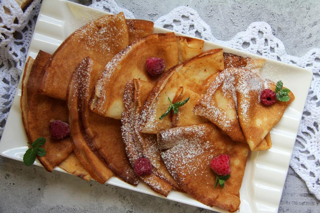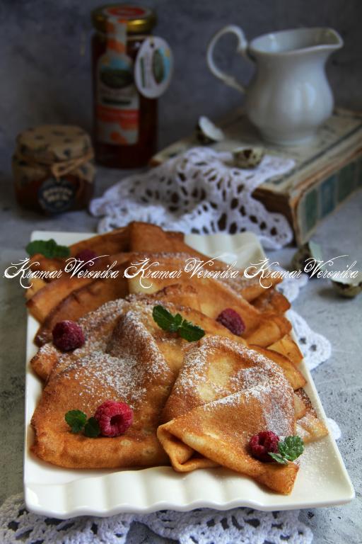 Нежные, тонкие, мягкие блины, приготовленные на перепелиных яйцах и молоке, подать к столу со сгущёнкой, вареньем или мёдом.