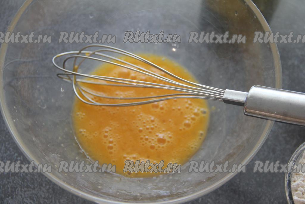 В смесь из перепелиных яиц влить молоко, перемешать венчиком.
