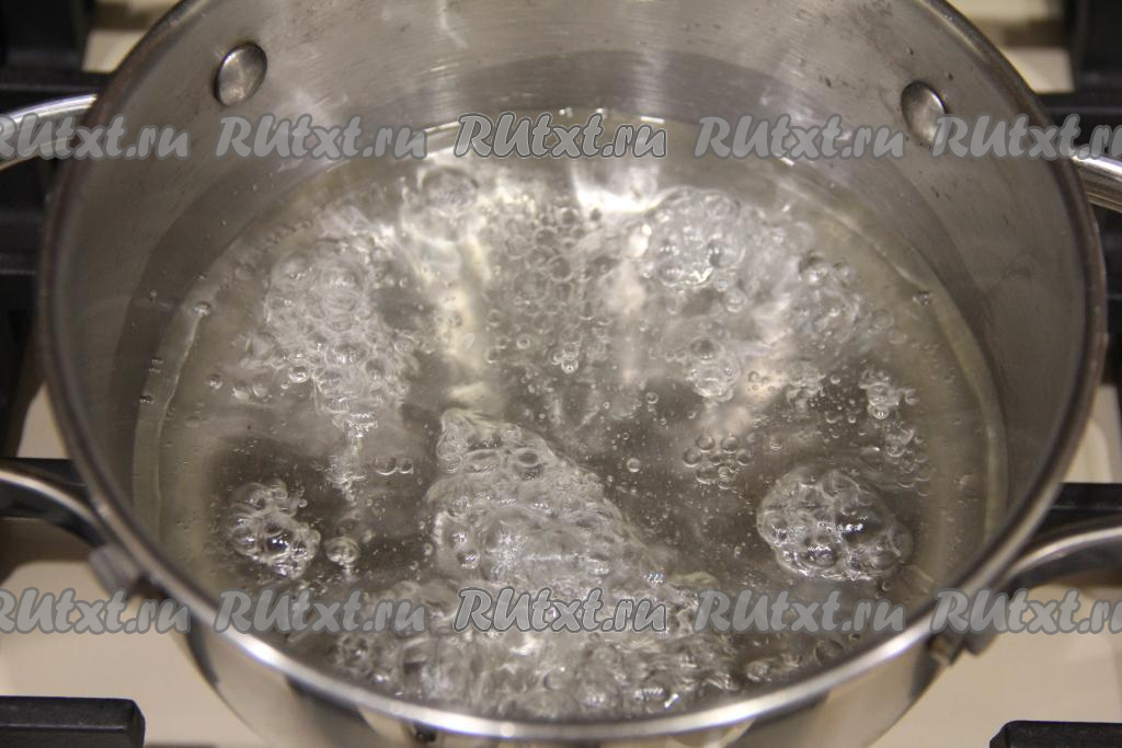 В кастрюлю влить воду и растительное масло, добавить соль. Поставить кастрюлю на огонь и довести смесь воды и масла до кипения.