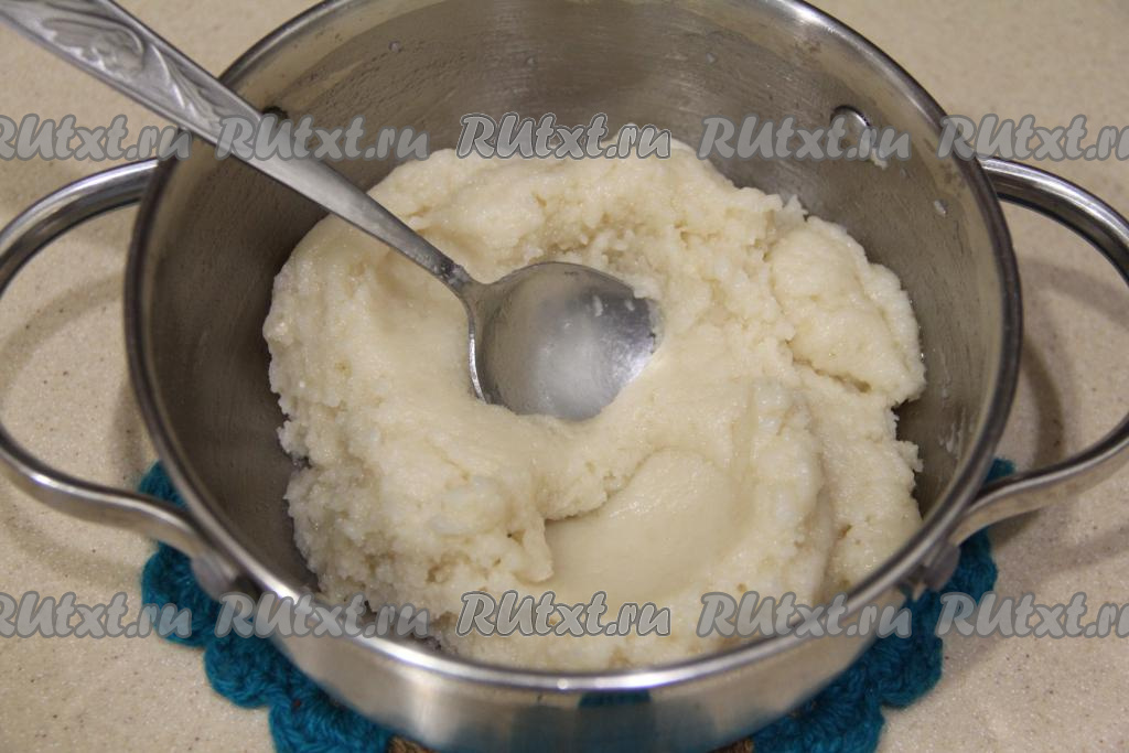 Заварное тесто должно получиться тягучим, не очень густым, как на фото.