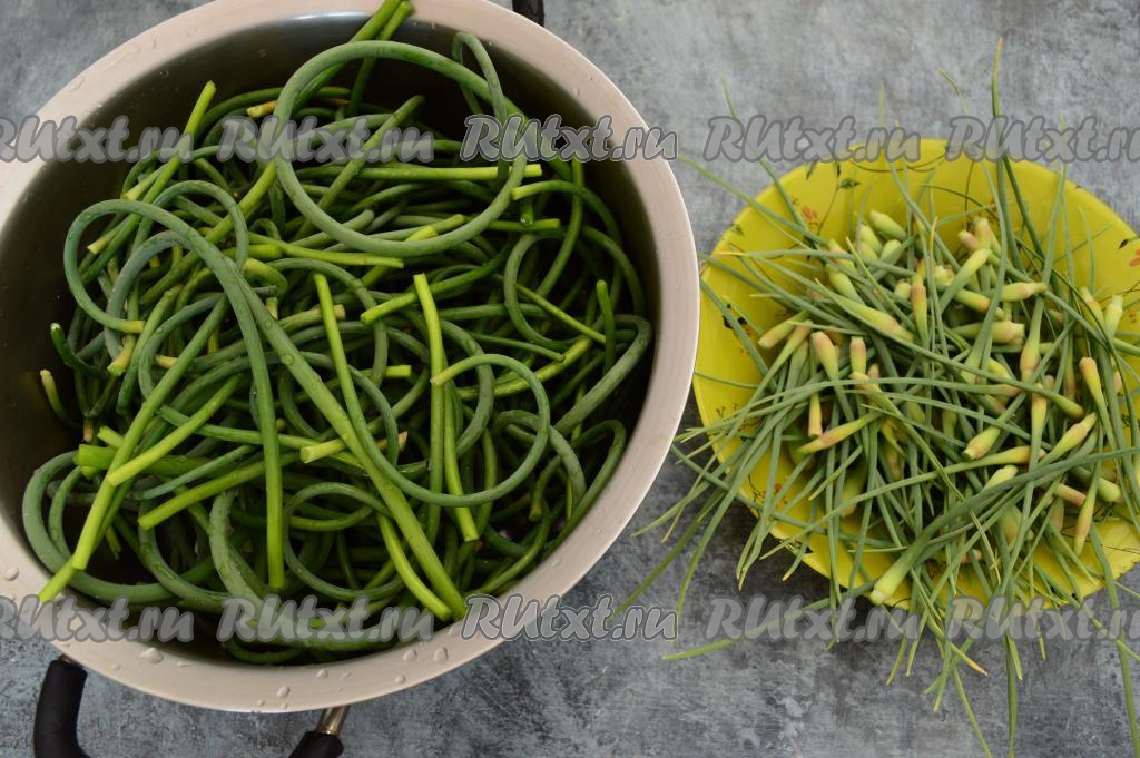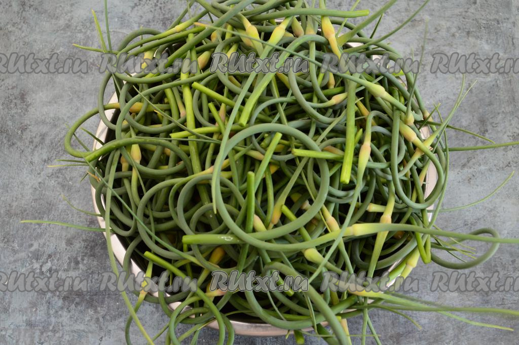 Вот такую миску стрелок чеснока мы собрали с огорода.