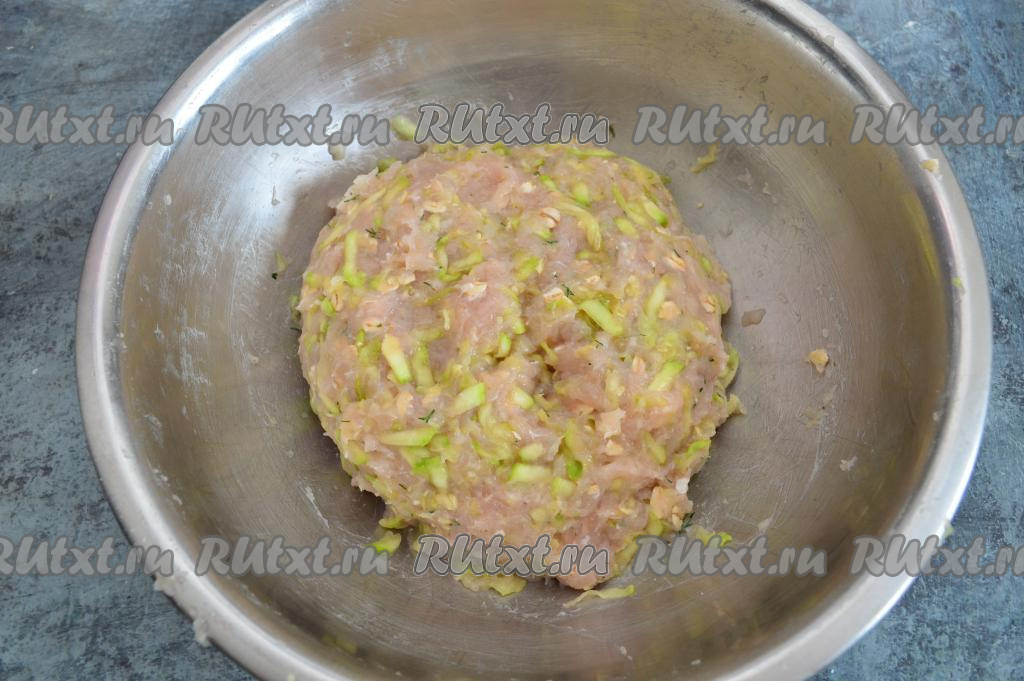 Тщательно перемешать курино-кабачковый фарш (до однородности) и поставить в холодильник минут на 15.