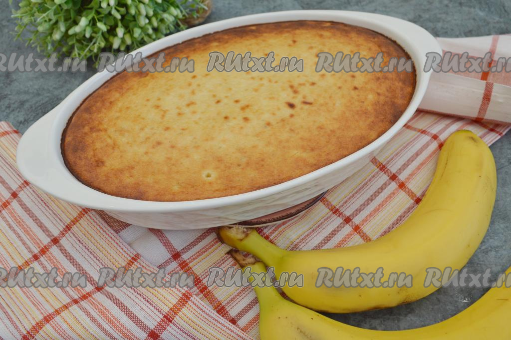 Выпекать творожную запеканку с манкой и бананом в разогретой до 180 градусов духовке в течение 35-40 минут. Готовность запеканки можно проверить сухой деревянной палочкой (если запеканка уже готова, значит после её прокалывания палочка останется по-прежнему сухой).