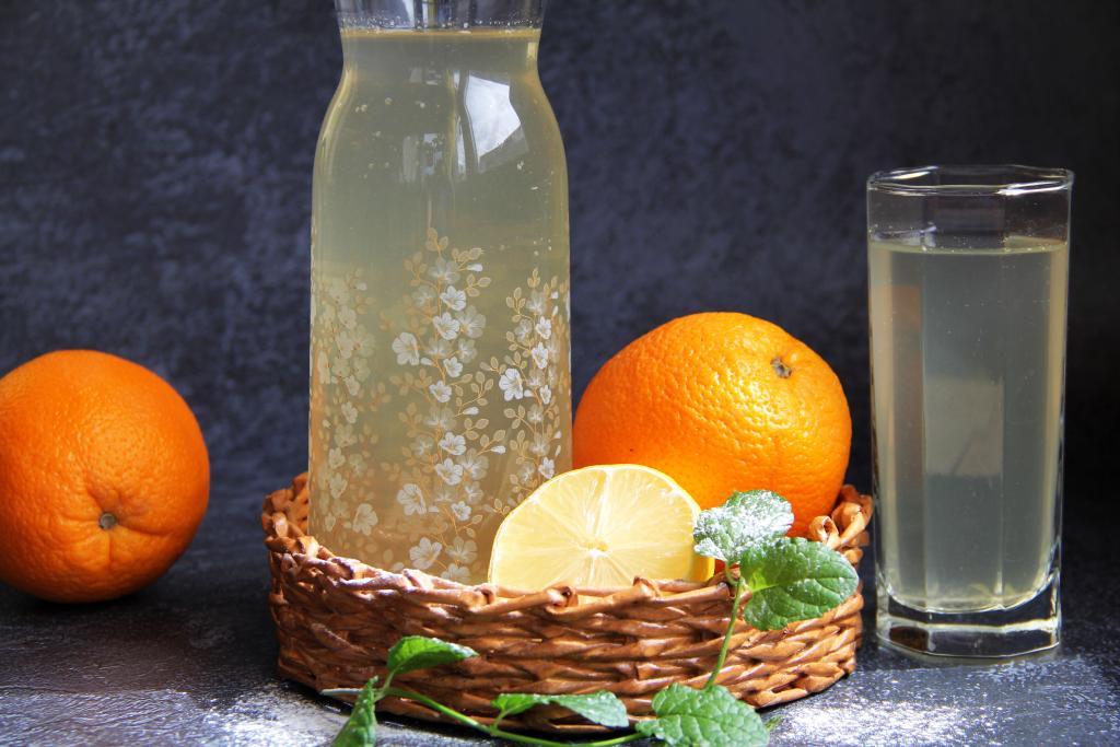 Остывший ароматный, вкусный компот, сваренный из ревеня с апельсином, перелить в графин и можно подавать к столу. Я перед подачей поставила его на несколько часов в холодильник. Такой напиток отлично утоляет жажду.