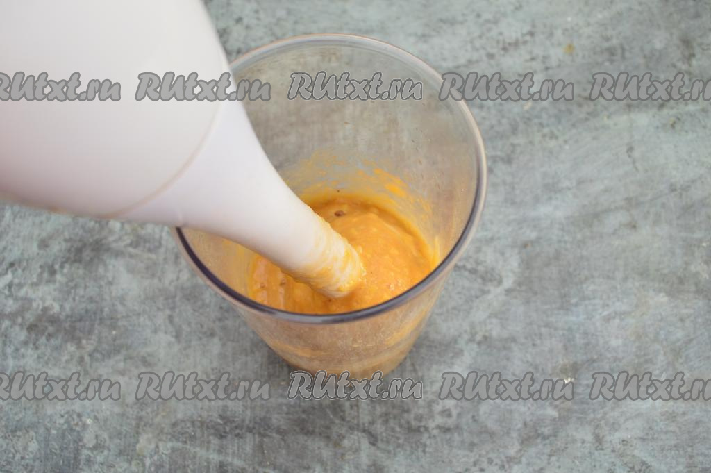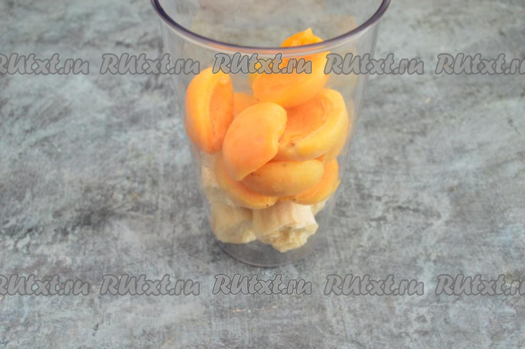 Погружным блендером пробить бананы и абрикосы до однородности (в течение 20-30 секунд).