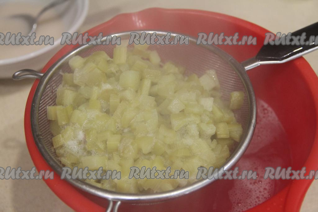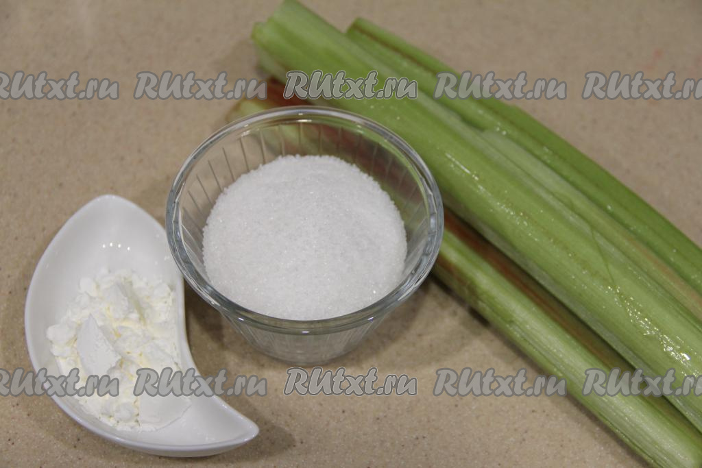 Подготовить продукты. Стебли ревеня вымыть, а затем снять тонкую плёночку, покрывающую стебли.