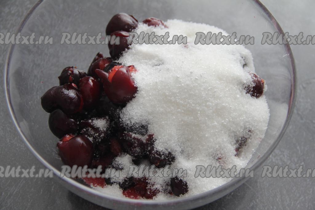 Ягоды перемешать с сахаром и лимонной кислотой. Оставить миску с черешней в сахаре на пару часов при комнатной температуре.
