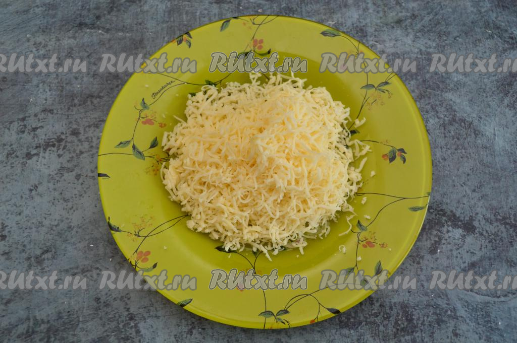 Пока мясо запекается, натереть на средней тёрке сыр.