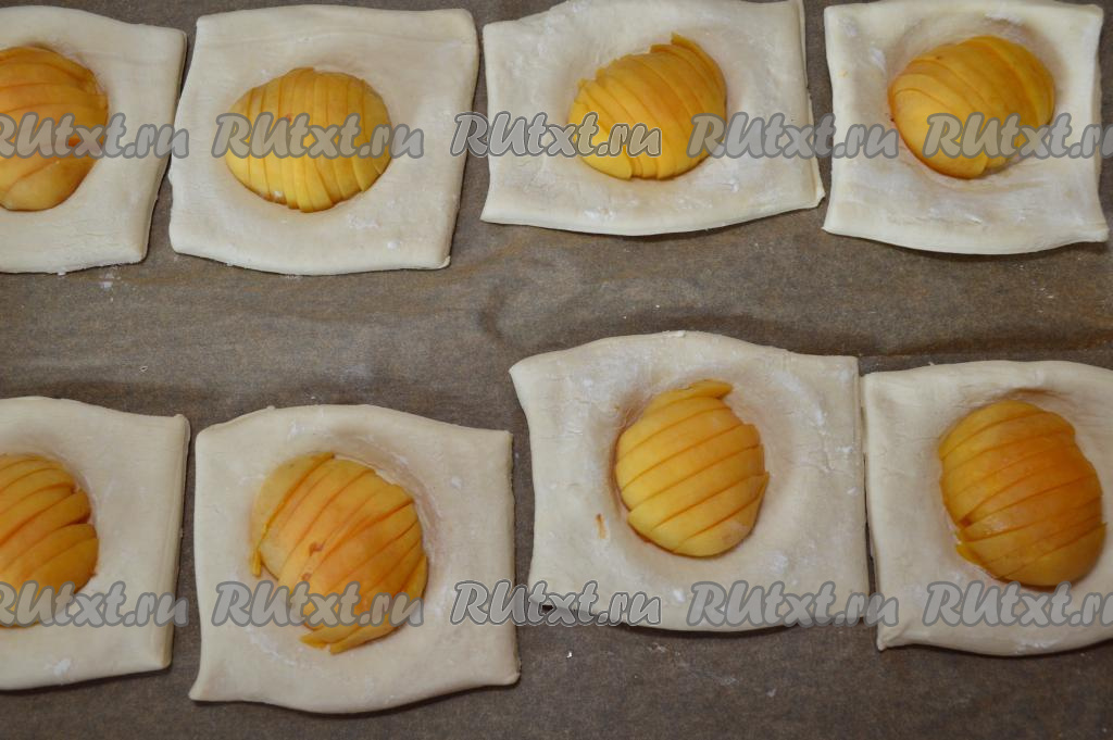 В сезон абрикосов хочется побаловать себя вкусной, красивой и аппетитной домашней выпечкой с этим солнечным фруктом. Сегодня у нас слойки с начинкой из абрикосов. Для этого рецепта нужны свежие абрикосы. Можно даже брать несладкие плоды, но тогда придётся добавить побольше сахара. Выпечка, приготовленная по этому рецепту, хороша не только отличным вкусом, но и простотой формовки. Нам даже не придётся раскатывать тесто. А в результате у вас к чаю будут вкусные и аппетитные слоечки с сочными абрикосами!